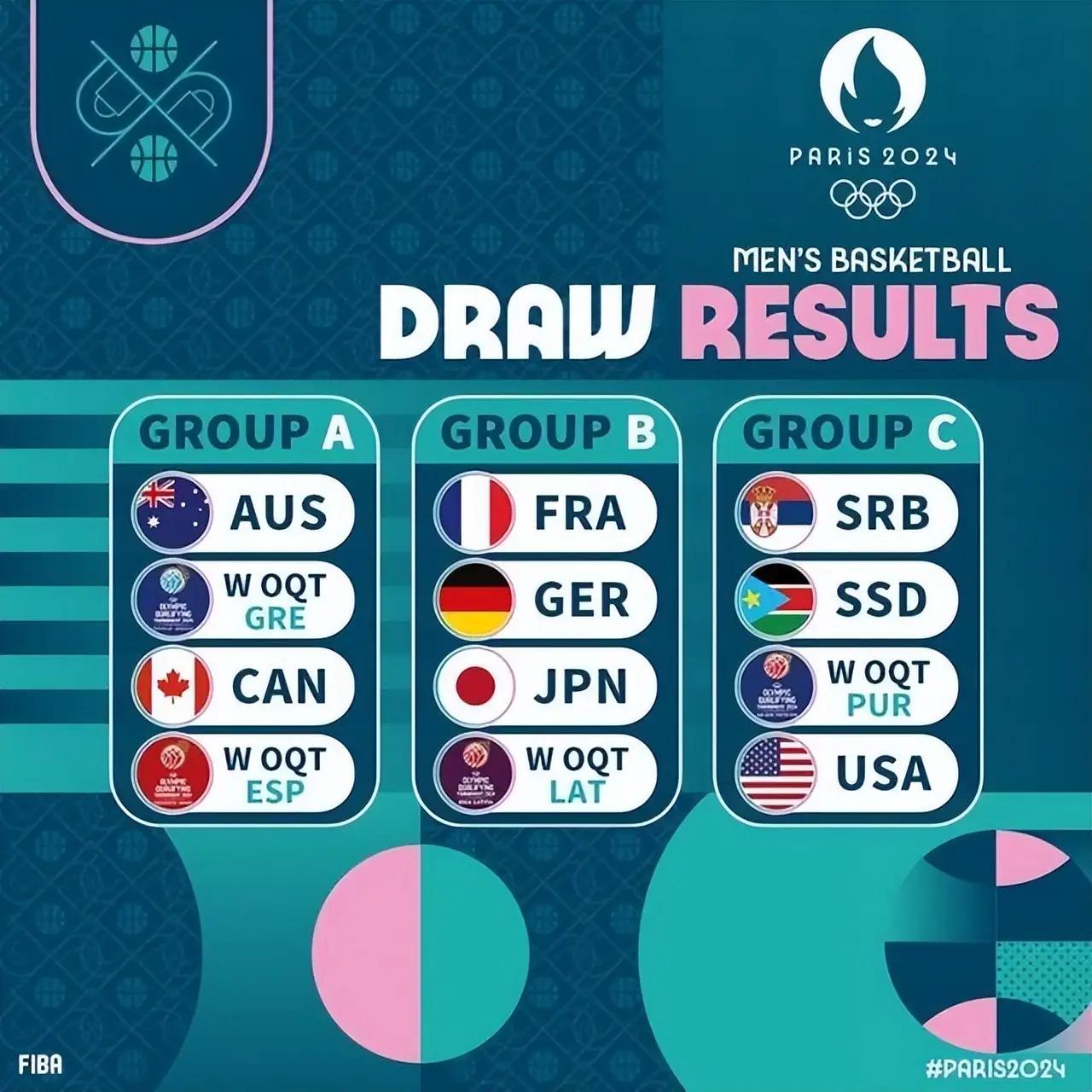 北京时间7月8日,随着奥运会落选赛决赛的落幕,波多黎各淘汰了立陶宛、希腊击溃了克罗地亚、巴西击败了拉脱维亚、西班牙击败了巴哈马晋级了奥运会,至此巴黎奥运会男篮的12支队伍也都全部出炉,3个分组的名单也都确定了下来,一起来看看奥运会男篮的分组,谁有望小组出线?