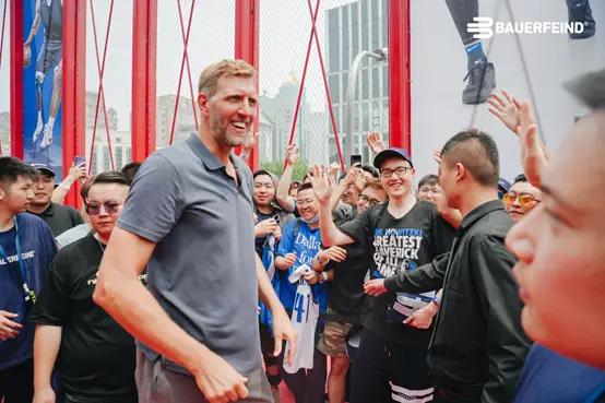 比赛现场气氛热烈,保而防代言人德克·诺维茨基与球迷亲切问候,得到了粉丝们的热情互动。