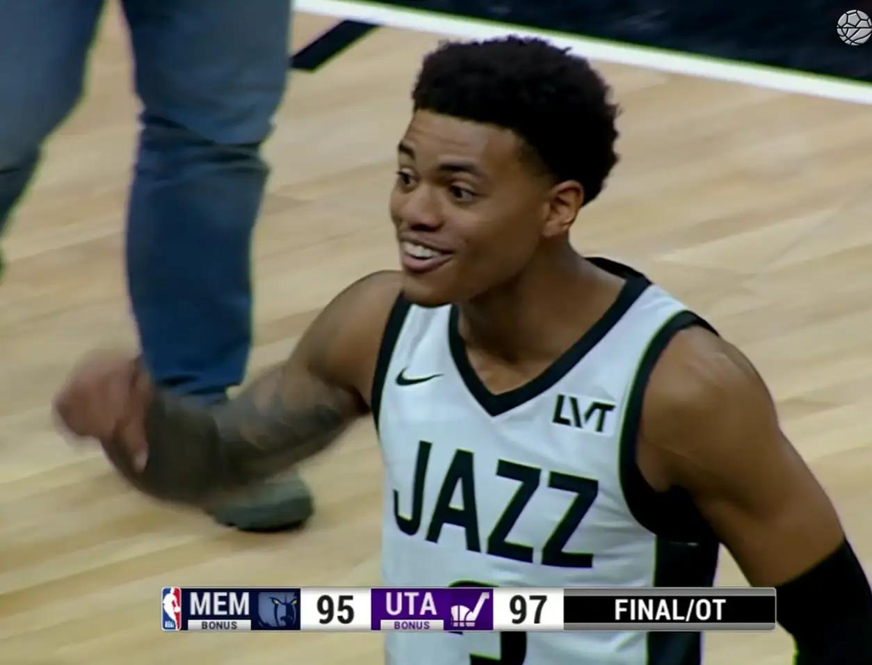 再加上对面还有一个非常会造犯规的碰瓷王,简直堪称是哈登转世的乔治,这个乔治也是上赛季爵士队进入轮换的天才新星,这场21投5中,命中率也没比杰克逊高到哪去,但是他罚球19中17,各种碰瓷造犯规要哨子。能在这种后卫的突破之下,保证自己只有6个犯规,其实已经很不容易了,要知道灰熊全队被这后卫突的有38个犯规。