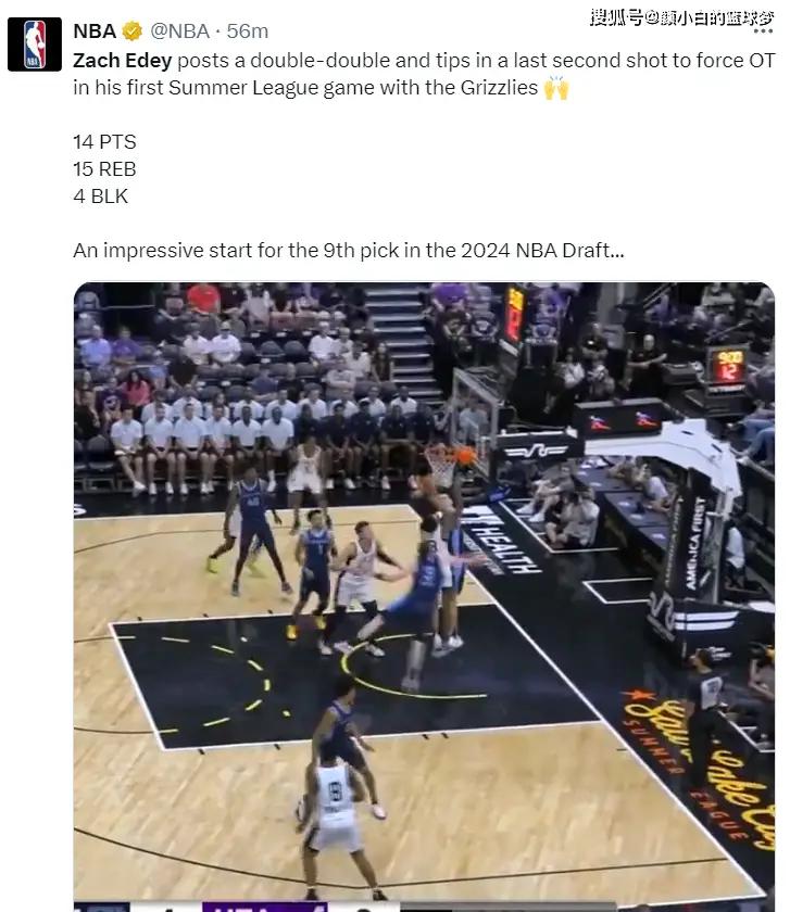 NBA官方写道:2024年9顺位的加拿大球员首秀令人印象深刻。。。。。。(很明显雅虎体育被狠狠打脸了,周志豪这位上赛季NCAA最佳球员没有让人失望)