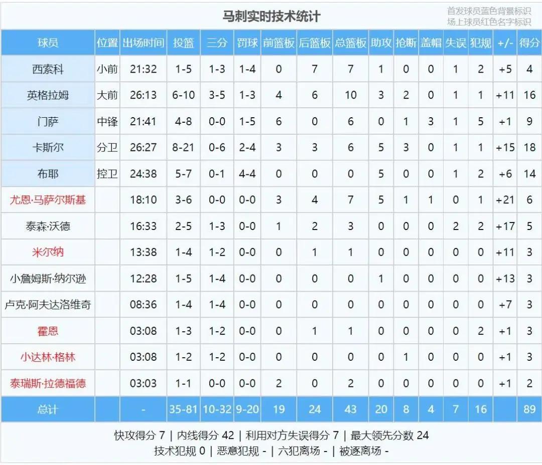 第四节马刺连抢前场篮板,末节刚打2分钟,马刺领先到17分,比赛又没悬念了。全场结束,中国男篮67-89不敌马刺。中国男篮在夏季联赛三连败,一共输了104分(51+31+22)。杨瀚森此役5中0,拿到6分8篮板4失误。