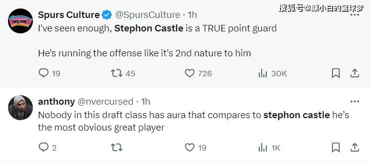 还有马刺球迷写道:本届选秀中没有人比卡斯尔更出色,他未来会成为伟大的球员。