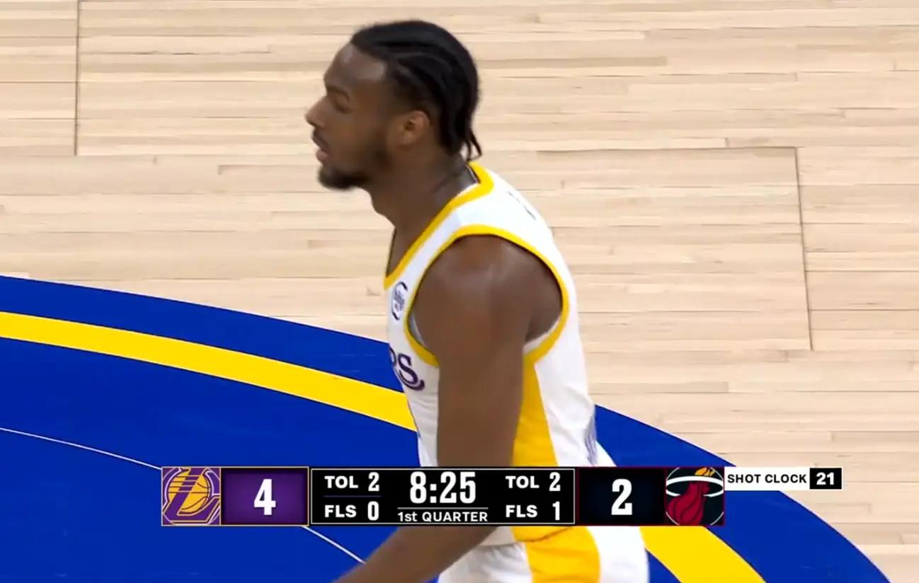 北京时间7月11日,NBA夏季联赛焦点大战再次到来,布朗尼紧急复出率领湖人对决热火,半场狂砍3分2板2助发挥精彩。