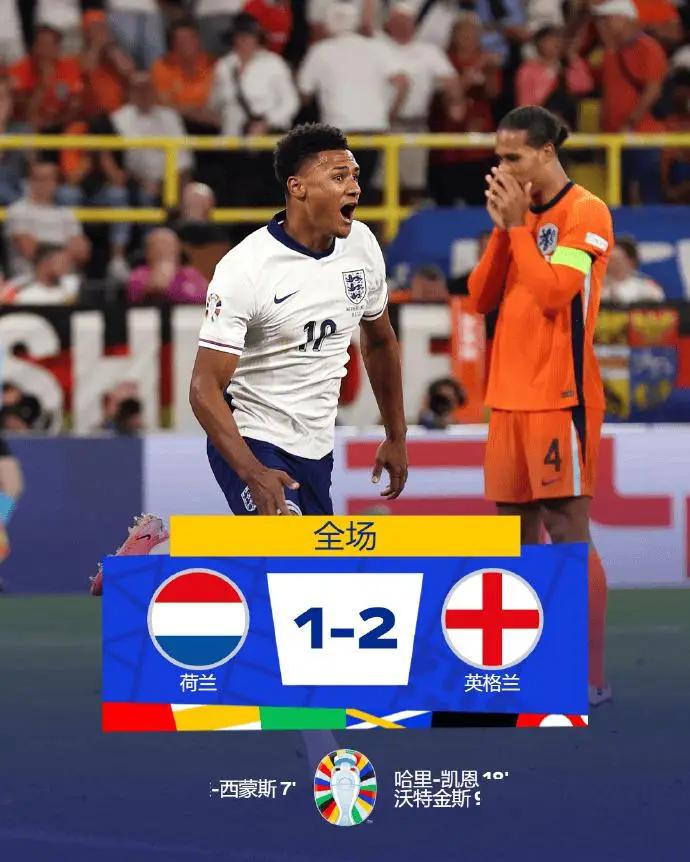 7月11日北京时间3:00,欧洲杯半决赛荷兰vs英格兰。上半场,哈维-西蒙斯世界波破门!邓弗里斯送点,凯恩点射扳平;邓弗里斯门线解围,随后又头球击中横梁!福登远射击中立柱!德佩35分钟伤退。下半场,萨卡破门被吹;沃特金斯替补登场,90分钟绝杀。最终,英格兰2-1战胜荷兰,连续2届欧洲杯打进决赛。他们将在7月15日于柏林迎战西班牙。