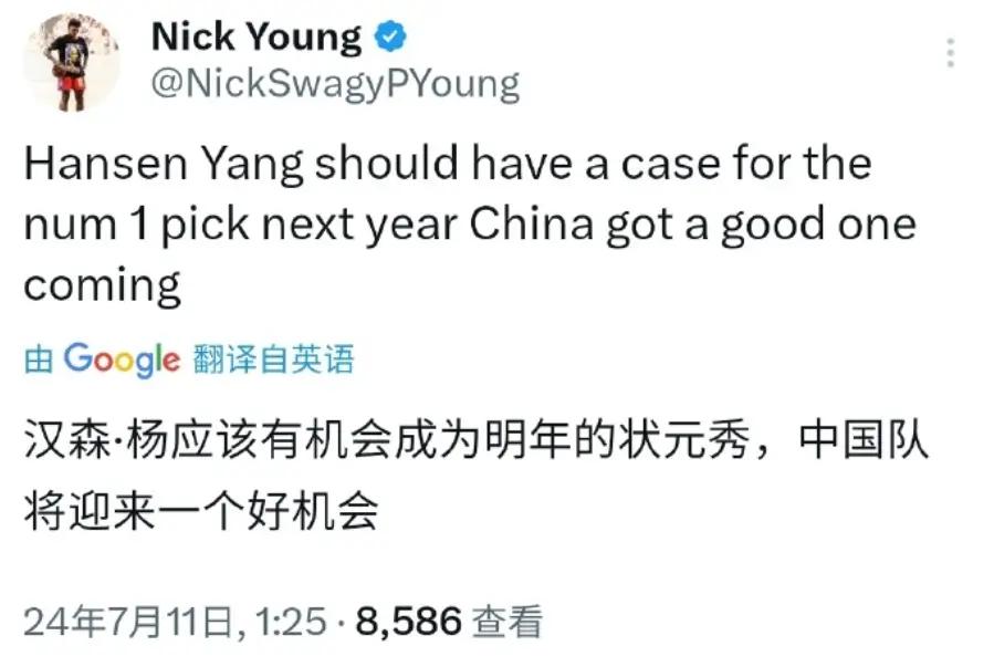 崔永熙勇于追梦,那么杨瀚森情况如何呢?跟随中国男篮前往美国拉练,参加NBA夏季联赛,杨瀚森第一次直接出现在更多的美国球探和NBA球队管理层人员的面前,表现有所起伏。关于杨 瀚森的讨论在美国有很多,比如前NBA球员尼克·杨就表示,杨瀚森有机会成为NBA选秀状元,而鹈鹕的球探则说杨瀚森明年来参加选秀肯定不会落选,只是首轮和次轮的区别。