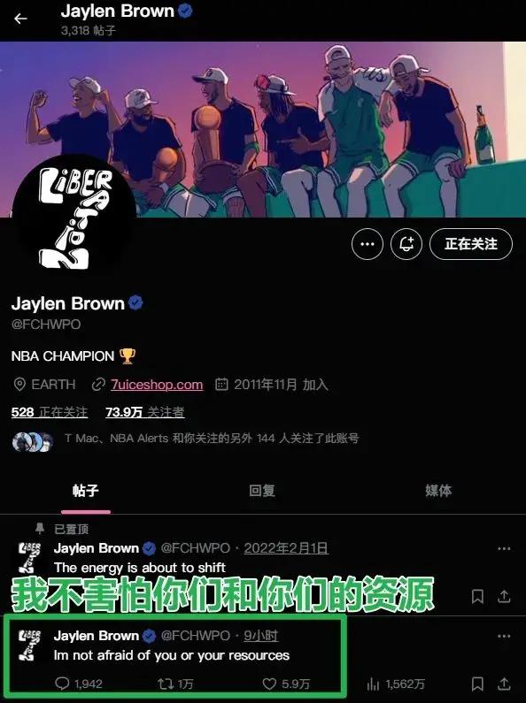 今日,杰伦再次发推疑似暗讽耐克,他写道:“我不害怕你们和你们的资源。”