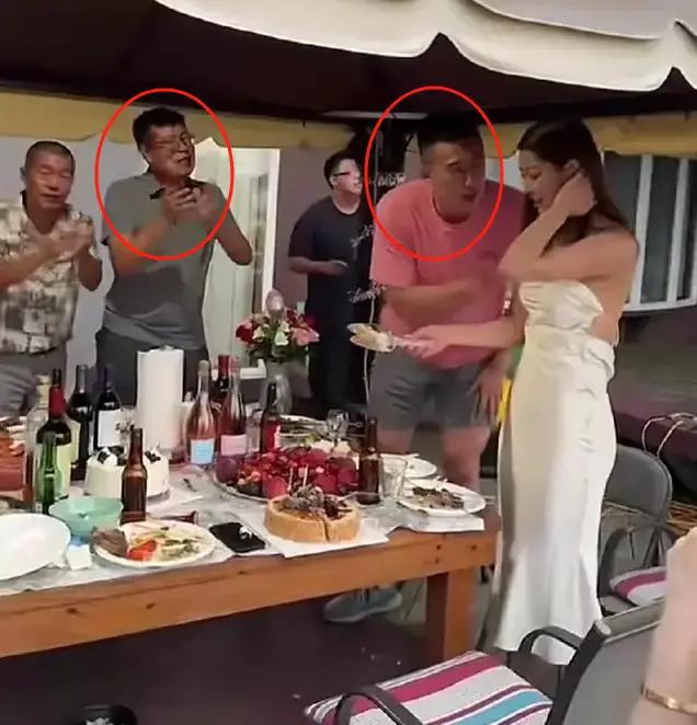 付豪身穿一件粉红色的T恤,并没有盛装进行求婚;而女友则身穿了一件白色长裙并且披着头发,给人一种端庄秀丽、大家闺秀的感觉。而其父亲在旁边更是送上掌声,且笑得合不拢嘴;作为一名父亲,能够见证自己的女儿人生最美好的时刻之一,当然要乐开花了。
