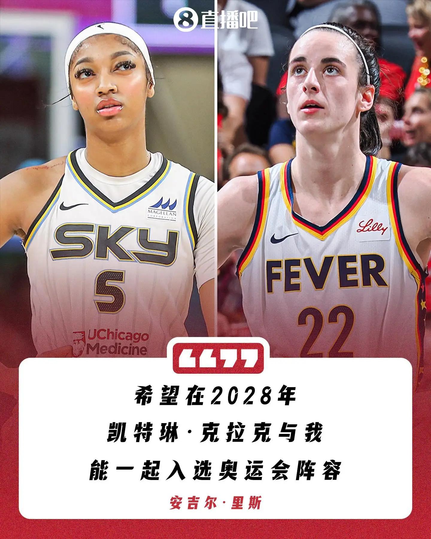 直播吧07月12日讯 今天对阵自由人拿到10分10篮板,将WNBA连续两双纪录延续至15场的新秀安吉尔-里斯,昨日在ESPN采访中,谈到她与状元凯特琳-克拉克将在全明星首次成为队友。她表示与克拉克搭档应该会非常酷,同时这也不会是两人最后一次搭档,并且希望自己和克拉克能在2028年奥运会入选美国奥运阵容。