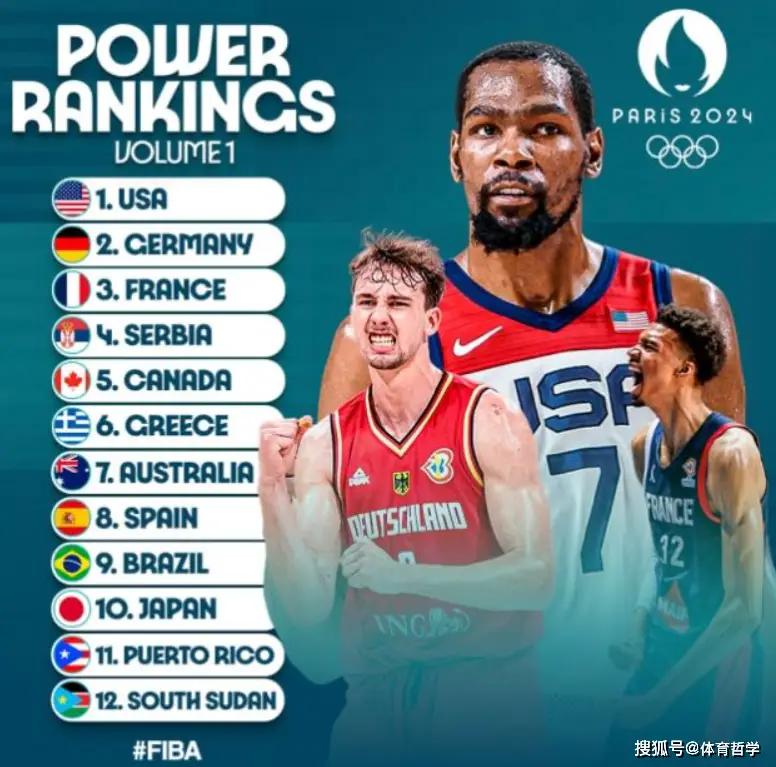 在此,就来看看国际篮联公布的巴黎奥运会,12支男篮球队的实力榜的最新排名: