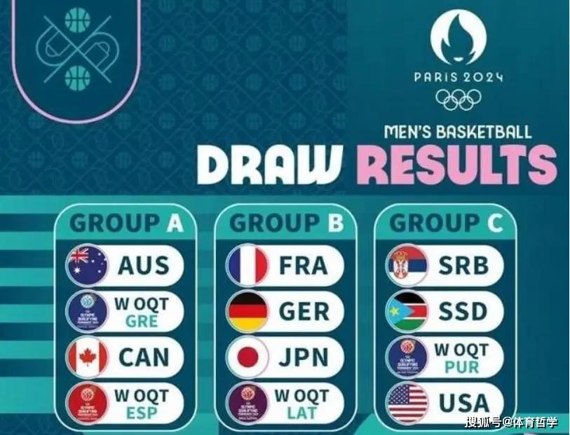 2024年巴黎奥运会,参加比赛的男篮球队一共有12支球队,小组赛被分为三个小组,根据规则,小组赛前两名的球队直接晋级八强,同时,成绩最后的2个第三名,也是会拿到晋级八强的门票。