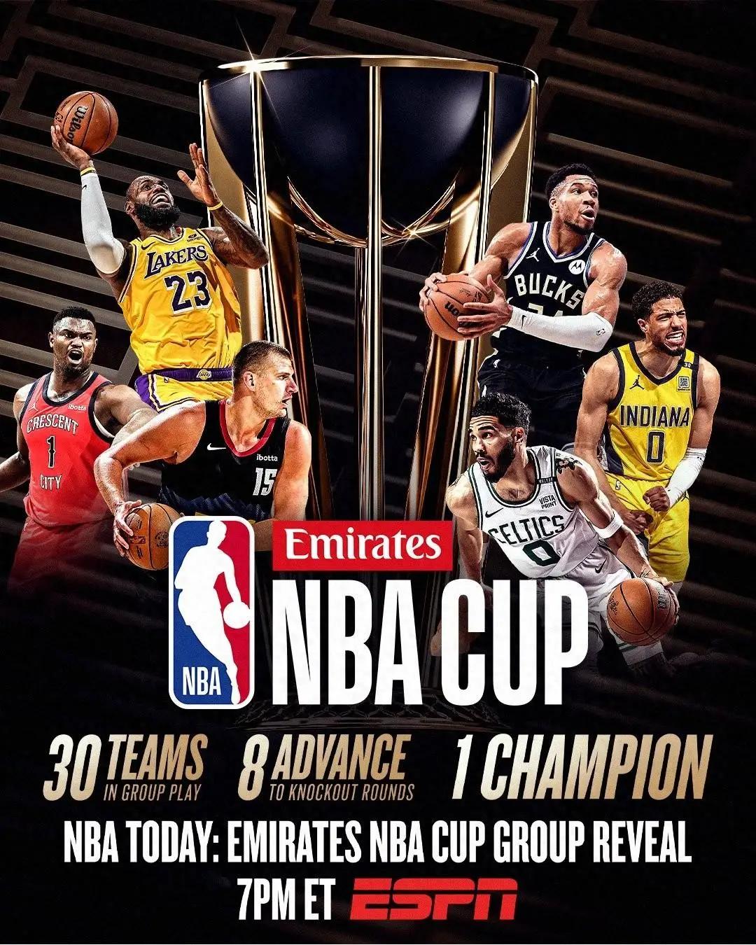 直播吧7月13日讯 NBA官方今日进行了24-25赛季NBA杯(季中赛)的分组抽签,详情如下: