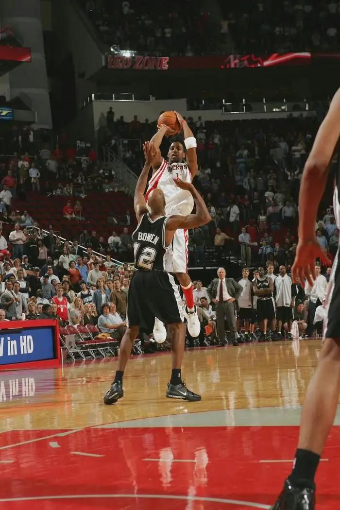 第一记三分是麦迪运球过前场直接出手投中3分,没有一个动作是多余的,因为此刻的时间是很宝贵的。第二记三分是3+1,接着姚明的掩护,麦迪在外线诱导了邓肯犯规,哨响后球应声入网,扎扎实实的3+1。不得不说邓肯关键时刻的罚球也是稳稳的两罚两中。