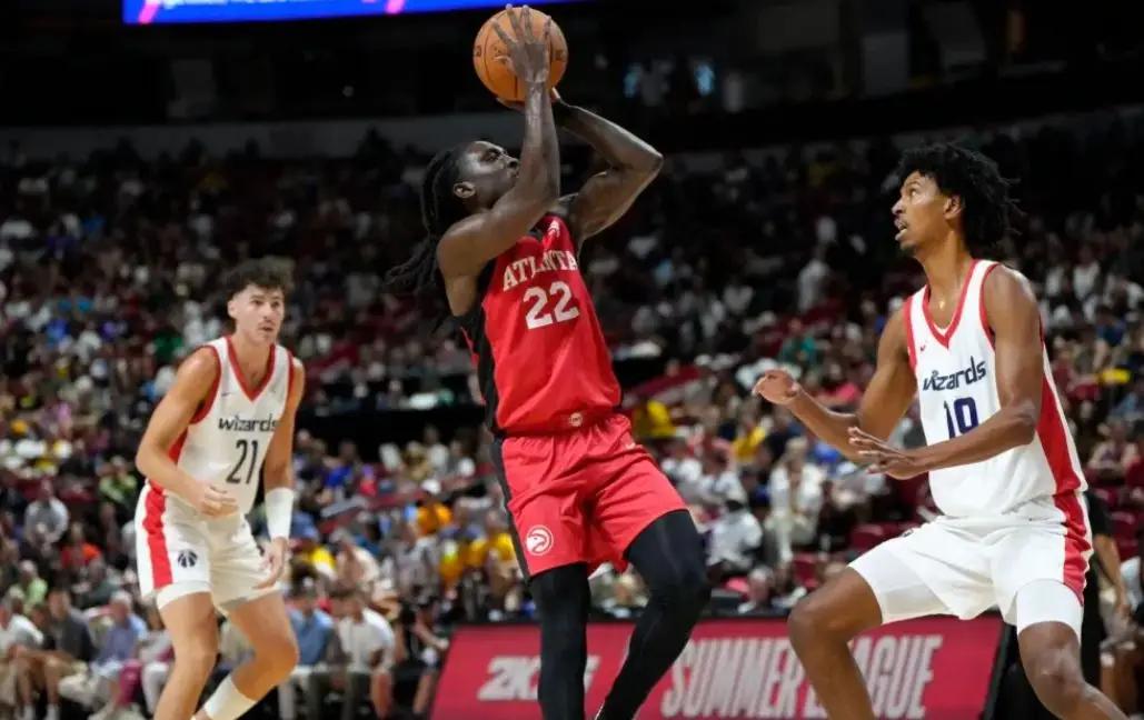在NBA拉斯维加斯夏季联赛的激烈较量中,一场备受瞩目的状元与榜眼直接对话于北京时间7月13日上演。然而,比赛结果却出人意料,奇才队在次节曾落后多达13分的不利局面下,凭借全队的顽强拼搏,最终以94-86逆转战胜老鹰队,取得了夏季联赛的开门红。