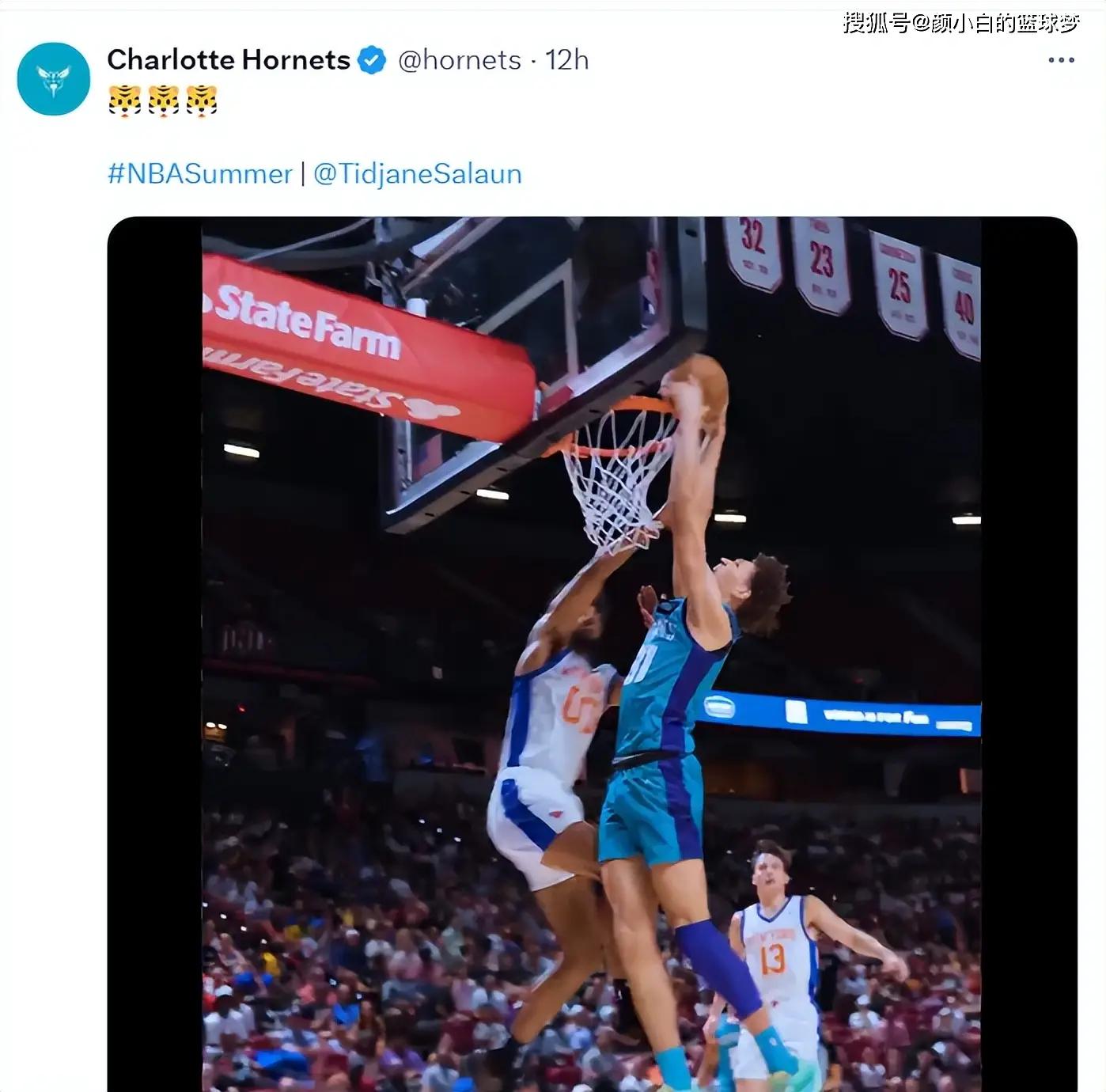 美记写道:应该让他先发,18岁的萨隆有体能与天赋打先发,他有希望成为夏洛特的新宠。