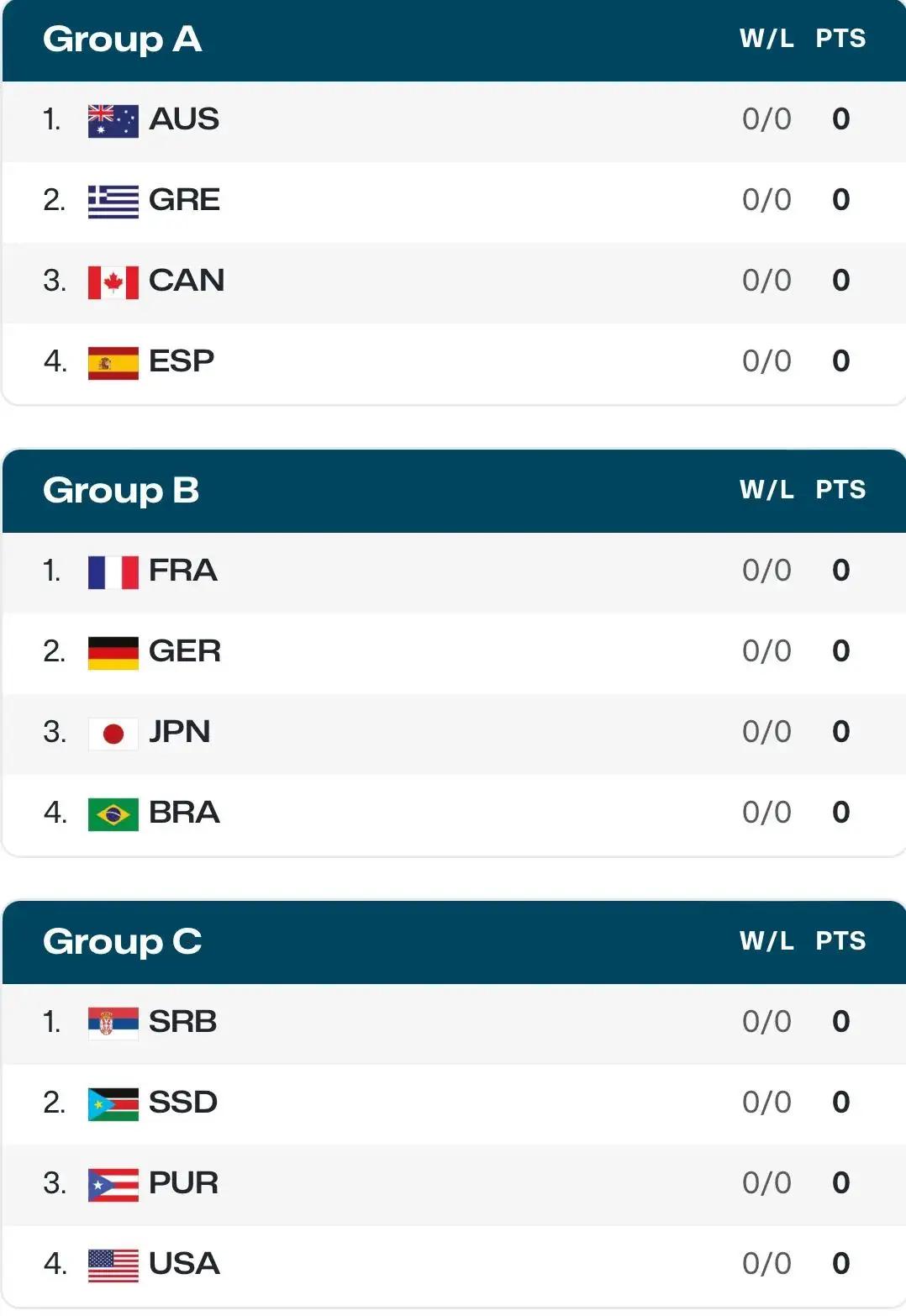 巴黎奥运会男篮比赛分组,A组堪称死亡之组,详情如下: