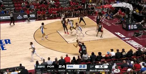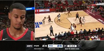 第一节打完,开拓者24-25落后1分。第二节开始,小崔继续留在场上。他先是单防16号秀魔仙哥,紧接着底角三分空心入网,这是崔永熙在夏季联赛的第一球。今年夏天,发展联盟精英训练营,崔永熙在测试环节,三分球25中23!