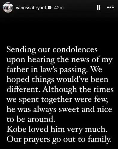 瓦妮莎对乔布莱恩特的哀悼,也被认为是不近人情。有美媒表示,瓦妮莎的声明缺乏人情味。瓦妮莎表示乔-布莱恩特的家人表示哀悼,仿佛她不是其中的一份子。有球迷甚至认为瓦妮莎的这份声明与其说是哀悼,不如说是“表态”:“她看起来超级疏远,但我想这可能就是这段关系的本质吧。”