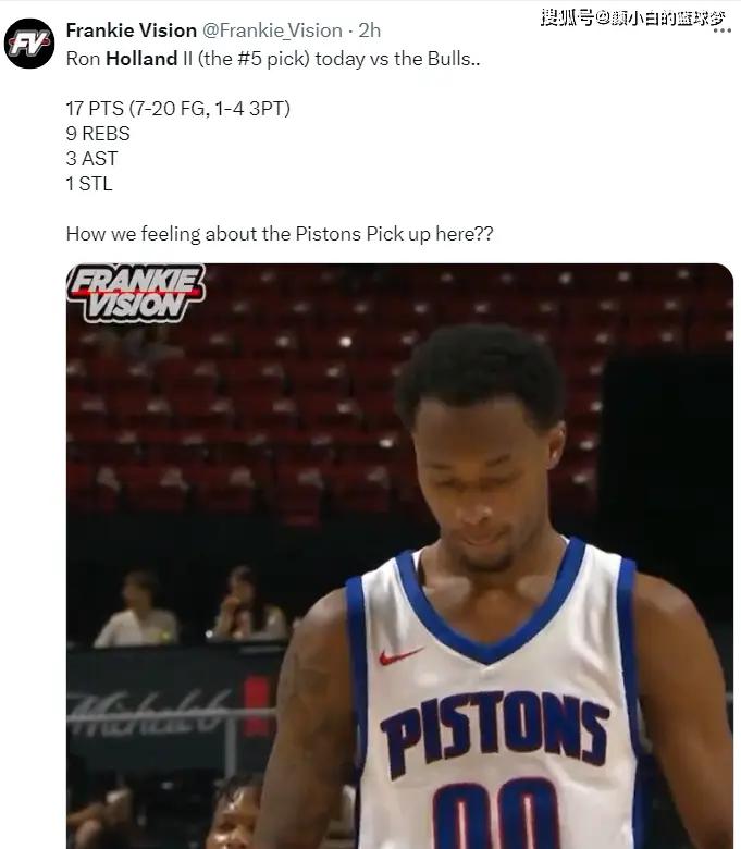美媒FV询问活塞球迷:五号签选中霍兰德感觉如何?(上一场霍兰德是15中5+三分2中0)
