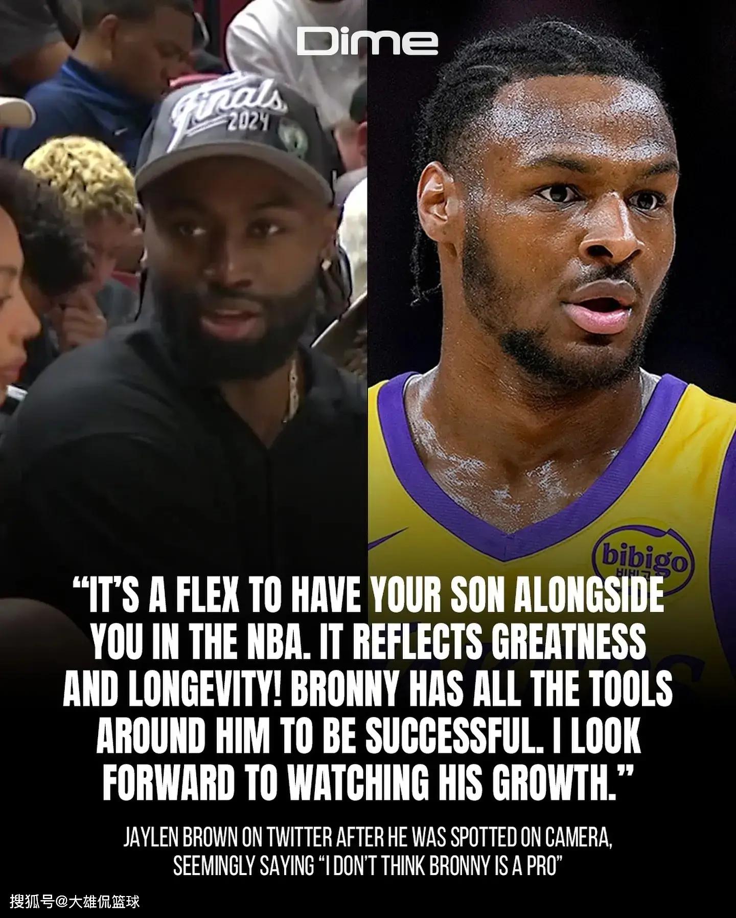 杰伦布朗表示,布朗尼詹姆斯压根不具备征战NBA的实力,他不行。而且,杰伦布朗直接表示,布朗尼詹姆斯未来会继续待在NBA,因为他的名字,因为他是勒布朗詹姆斯的儿子。