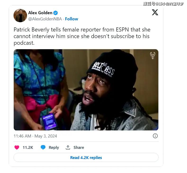 贝弗利拒绝回答ESPN记者Malinda Adams的提问,恰好Malinda Adams是最受尊敬的媒体人,多位NBA记者在社媒上炮轰贝弗利,最终贝弗利被处罚终身无法以嘉宾的身份参与ESPN节目。