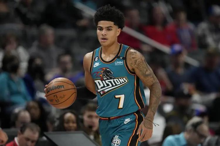 基利安-海斯,2020年7号秀,目前代表活塞出战4个赛季(今年2月被球队裁掉),共打了210场比赛,场均26.1分钟,得到8.1分2.9篮板5.2助攻1.2抢断,三项命中率为38.2/27.7/77.5%。