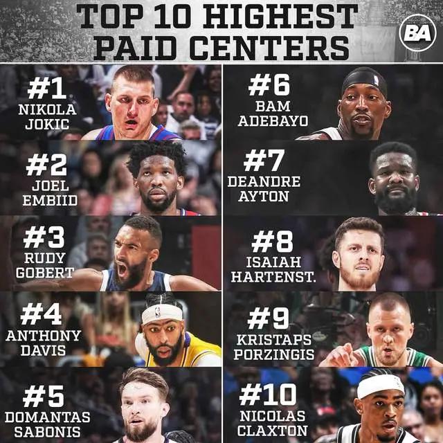 最近有美媒统计了下个赛季NBA中薪资前十的中锋球员,具体的排名如下:1.约基奇、2.恩比德、3.戈贝尔、4.戴维斯、5.萨博尼斯、6.阿德巴约、7.艾顿、8.哈尔滕施坦因、9.波尔津吉斯、10.克拉克斯顿。