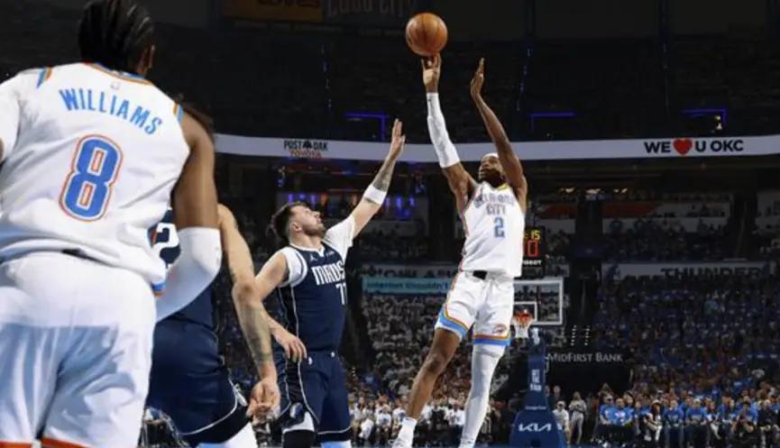 在季后赛里,雷霆也确实有过“昙花一现”的苗头。季后赛次轮,表面上,雷霆能在“总亚军”独行侠身上赢下两场,结果似乎能让球迷接受。但细看比赛过程,雷霆始终被独行侠压制得喘不过气来,他们攻不破加福德和莱弗利镇守的篮下防线。面对独行侠便秘的进攻空间,雷霆在防守端也没有作为,丝毫防不住独行侠的空切进攻。赢下的两场比赛,实质上是靠三分球逆天改的命。遗憾的是,豪赌三分手感,是一支“昙花一现”型球队的经典特征。