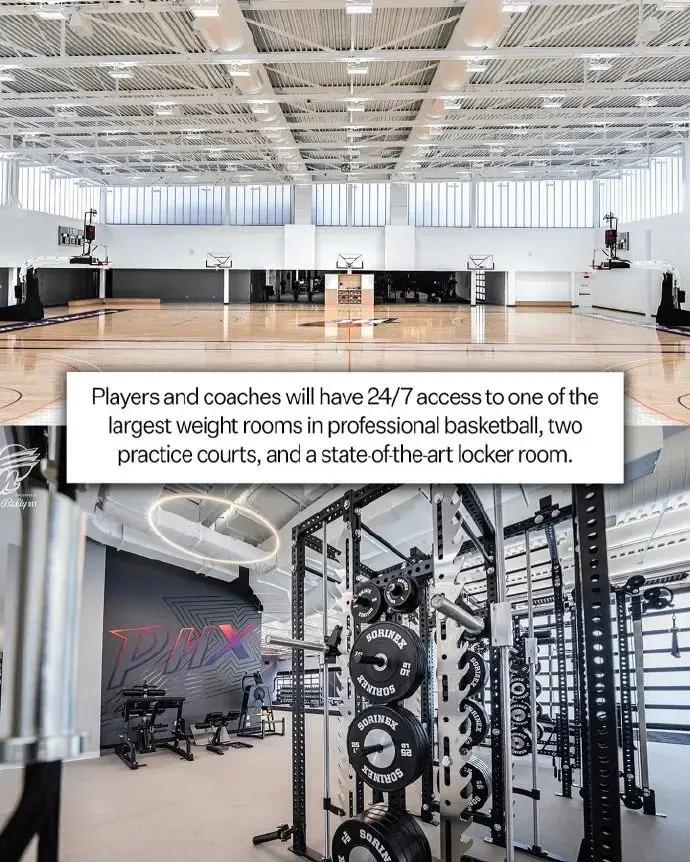 训练中心包含一个健身房、一个专业篮球场、两个训练场,还有最先进的后勤设施。包含汗蒸、水疗设备,餐饮部、电影院、球员休息室等等,而且这些都是全天候供球队使用。