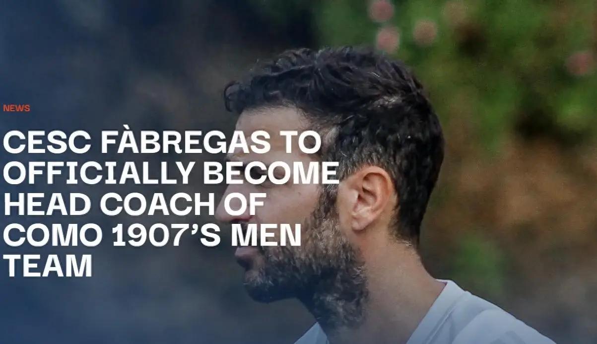 直播吧07月19日讯 意甲升班马科莫官方消息,37岁法布雷加斯正式出任球队主帅,双方签约4年。