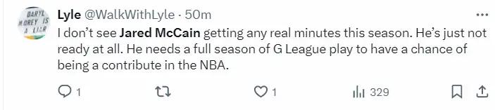 费城球迷:我觉得麦凯恩新秀赛季在费城没有任何登场时间,他根本没准备好打NBA,他需要在G联赛至少打满一个赛季在NBA才能有所贡献。