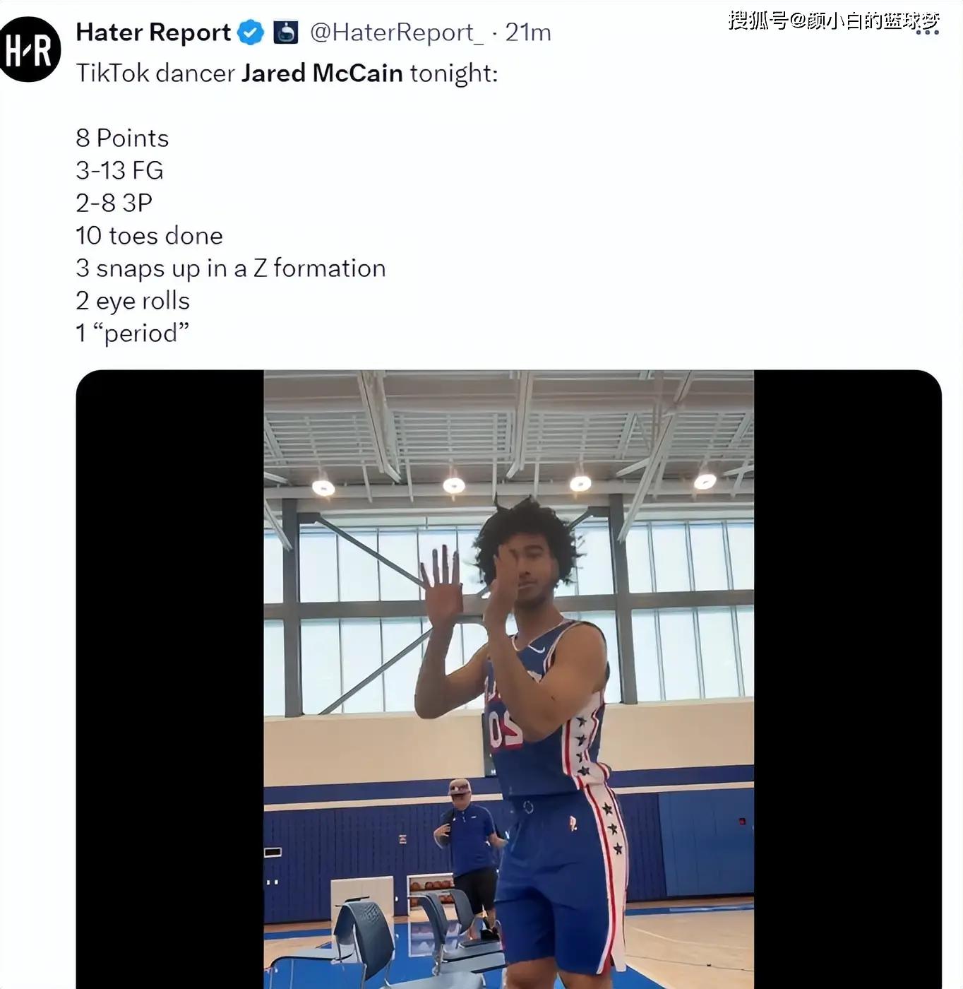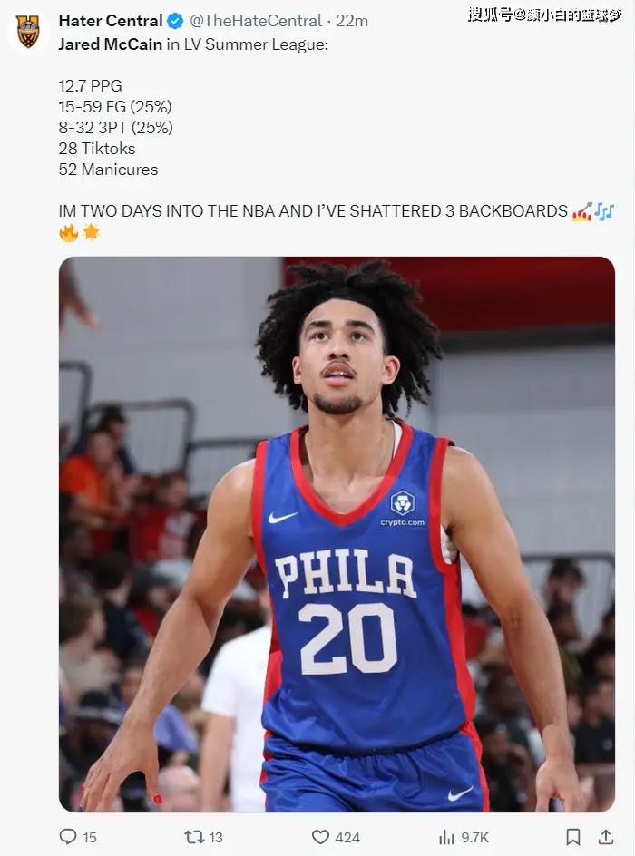 在盐湖城夏联时麦凯恩就发挥不佳,费城夏联主帅将他从一号位移动到二号位,结果他依旧表现拉胯。
