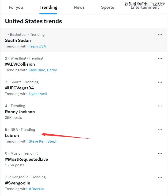 赛后勒布朗-詹姆斯也登上了全美第五热搜,实际上是从第一热搜上滑落下来的,毕竟勒布朗准绝杀那一刻全美都沸腾了。