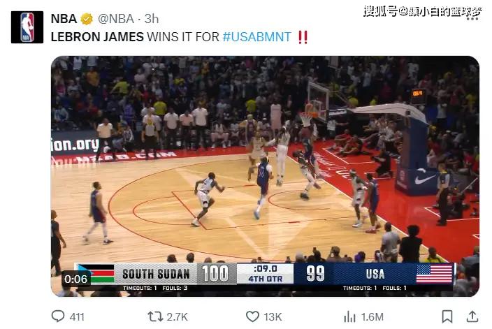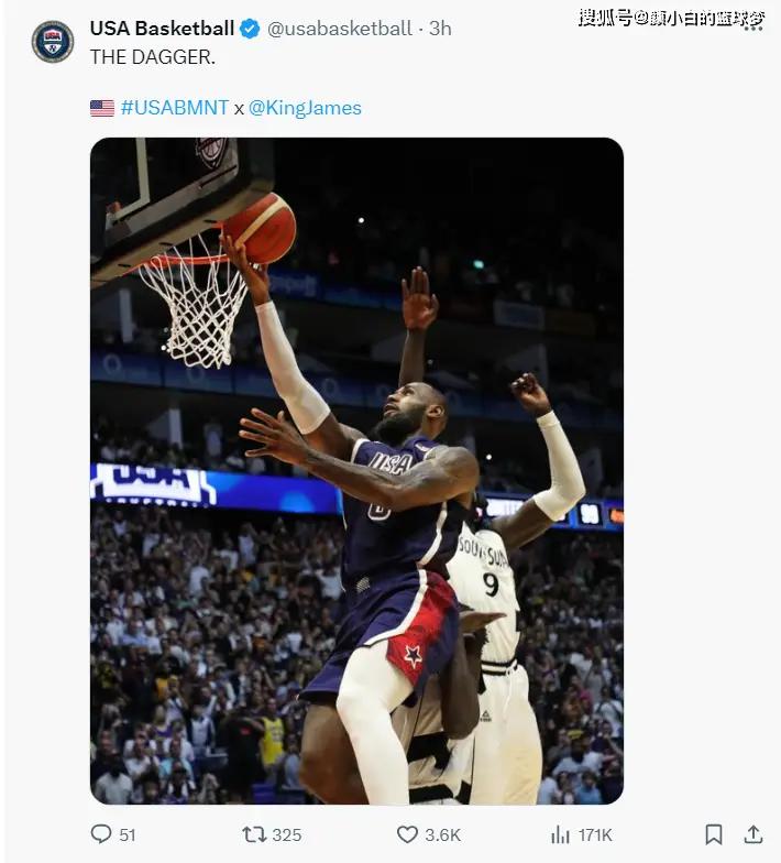 USA官方晒出了勒布朗8秒准绝杀的特写镜头,40岁的老头子滞空能力依旧恐怖。