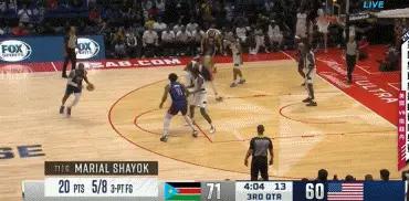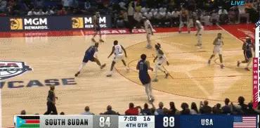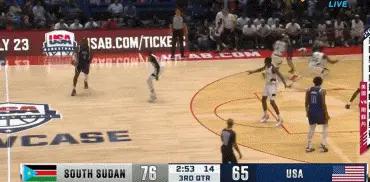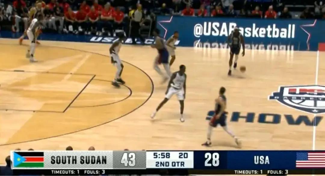 一波17比4的攻击波,南苏丹竟领先了美国15分,半场结束时领先14分。
