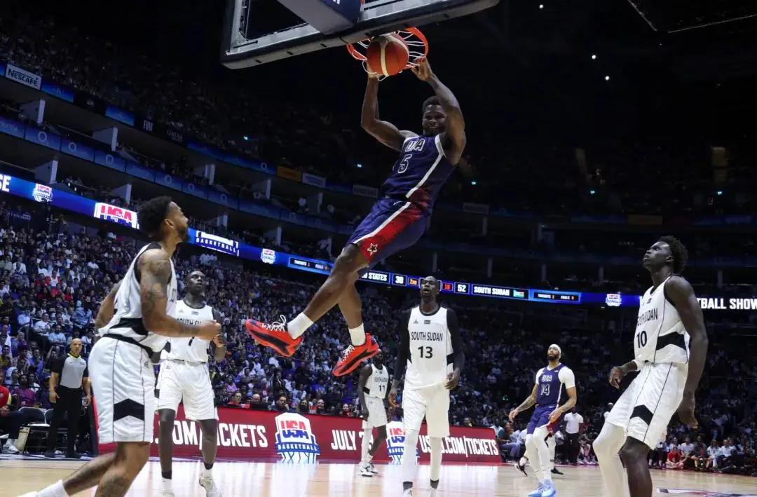 比赛的对阵双方是美国男篮跟南苏丹男篮,看上去不会是一场对等的比赛。