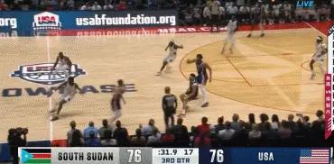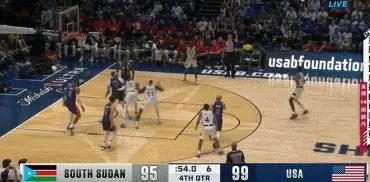 美国人想紧一紧,追追分,不曾想投篮还是很烂,上半场三分球12投1中,反复被南苏丹打反击。