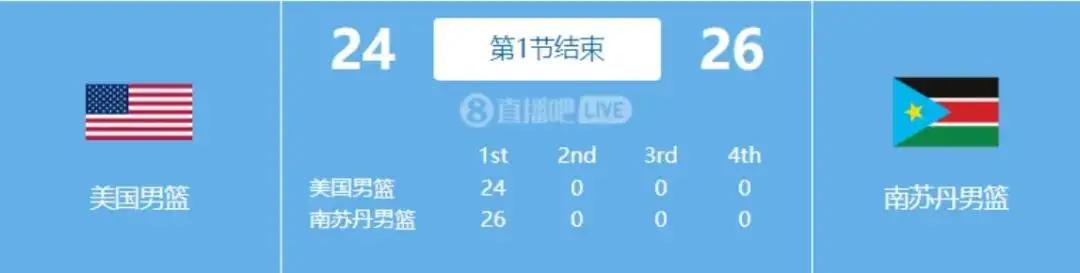 美国人在本场比赛的投射非常糟糕,是库里都没法拯救的那种差,于是他们首节打完以24比26落后南苏丹。