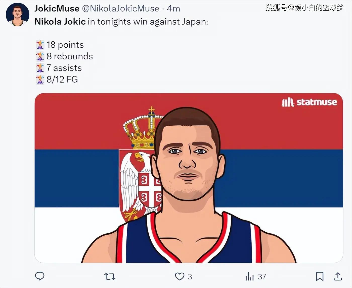 约基奇牛刀小试,23分钟,拿到12中8拿到18分8篮板7助攻;博格丹诺维奇25分钟拿到15分8助攻,塞尔维亚全队有5人得分上双。