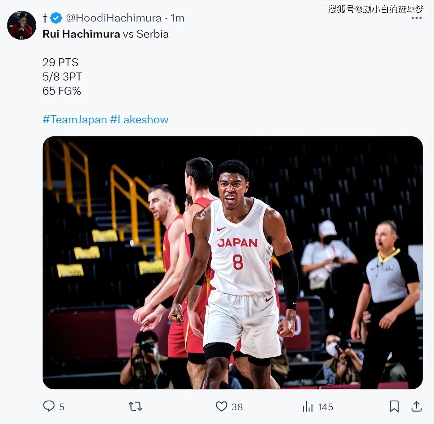 上一场对阵德国的比赛,八村垒全场比赛25分钟,13中6,三分5中2,拿到19分5篮板2助攻,命中率46.1%,三分命中率40%,八村垒的竞技状态一场比一场好,但日本一场21分惨败,一场19分惨败硬实力十分孱弱。