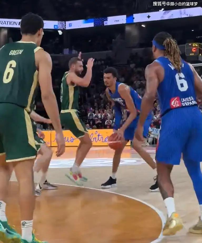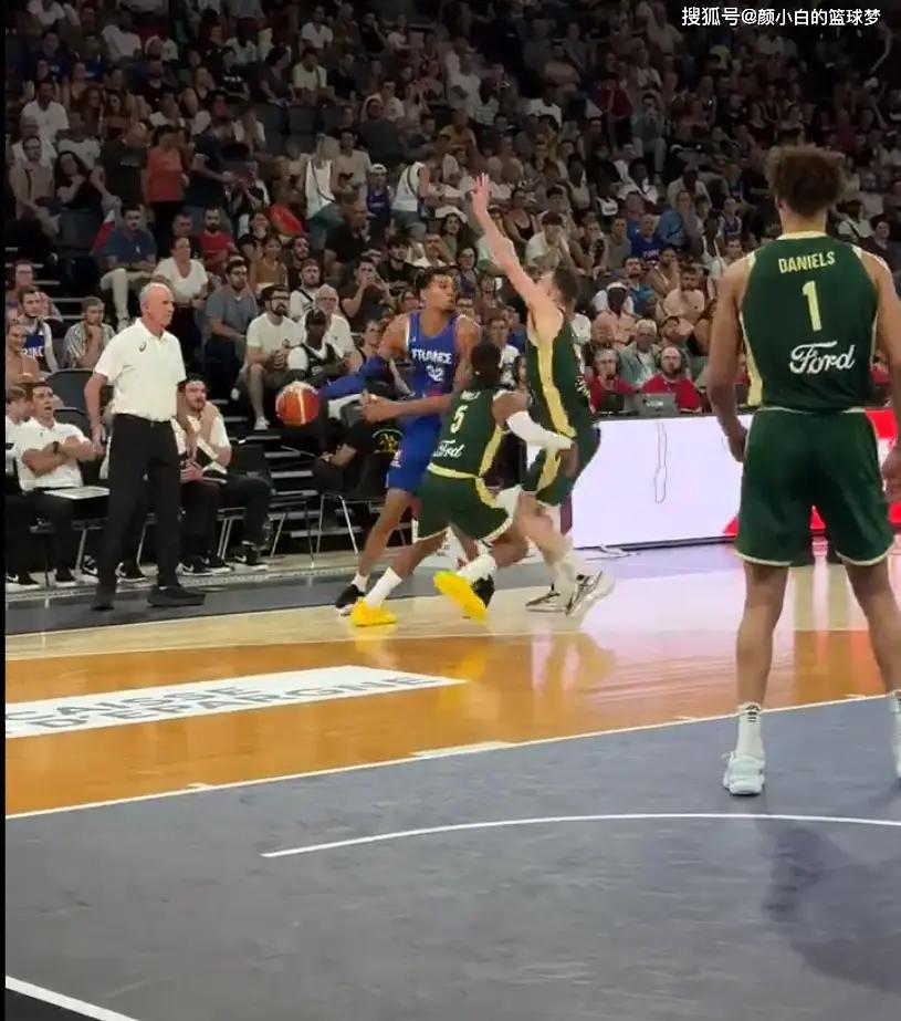 终场前2分46秒法国命中一个三分后扳成80-80,这时候澳大利亚的核心米尔斯漂移三分球命中,法国还被吹罚了一个阻挡犯规,裁判去看回放,看这球是米尔斯出手前犯规还是出手后犯规,最终裁判好像没有给犯规,文班亚马助攻戈贝尔暴扣得手缩小到1分。