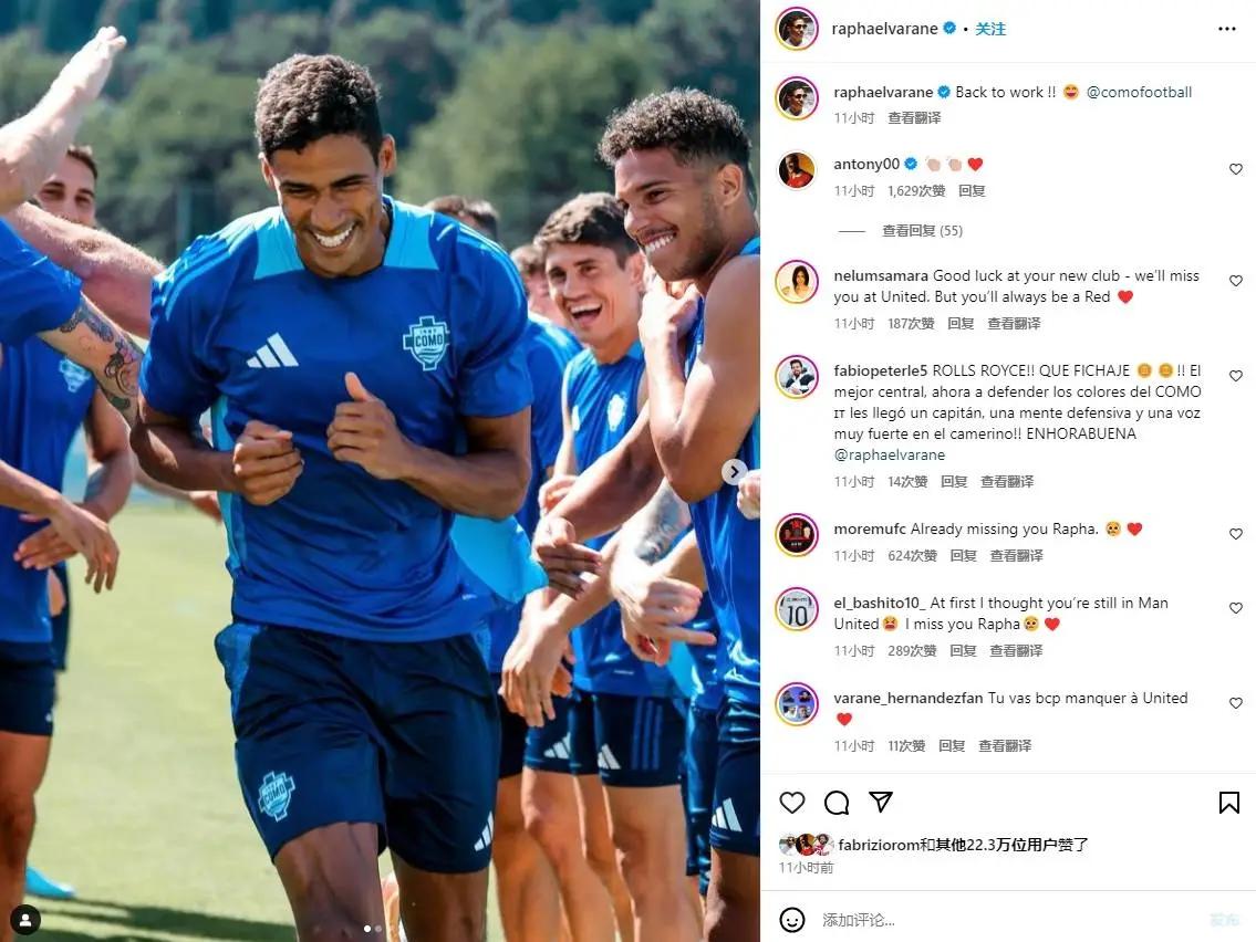 瓦拉内已经开始随队训练,他在社媒晒出参与科莫训练的照片,并配文:“回归工作”。新赛季意甲首轮,科莫8月20日客战尤文。