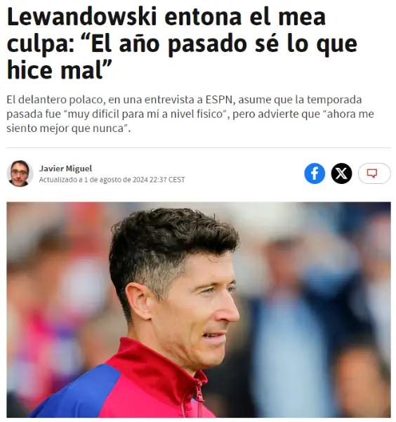 莱万多夫斯基随后承认,上赛季的表现无法让人满意,“上赛季对我来说,身体上也存在一定问题,而且我清楚知道哪