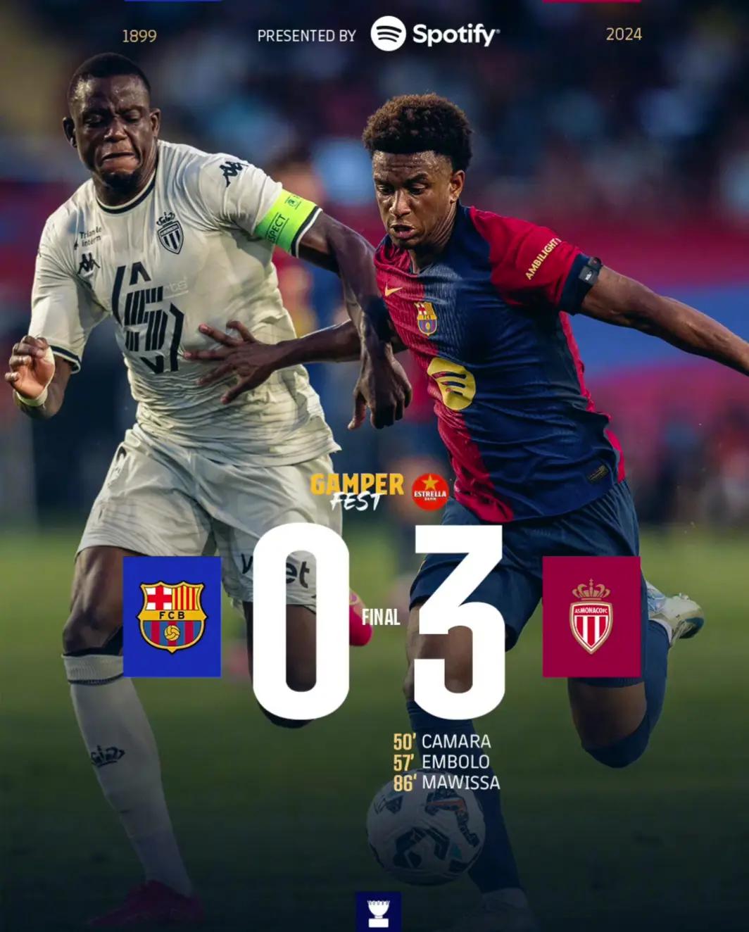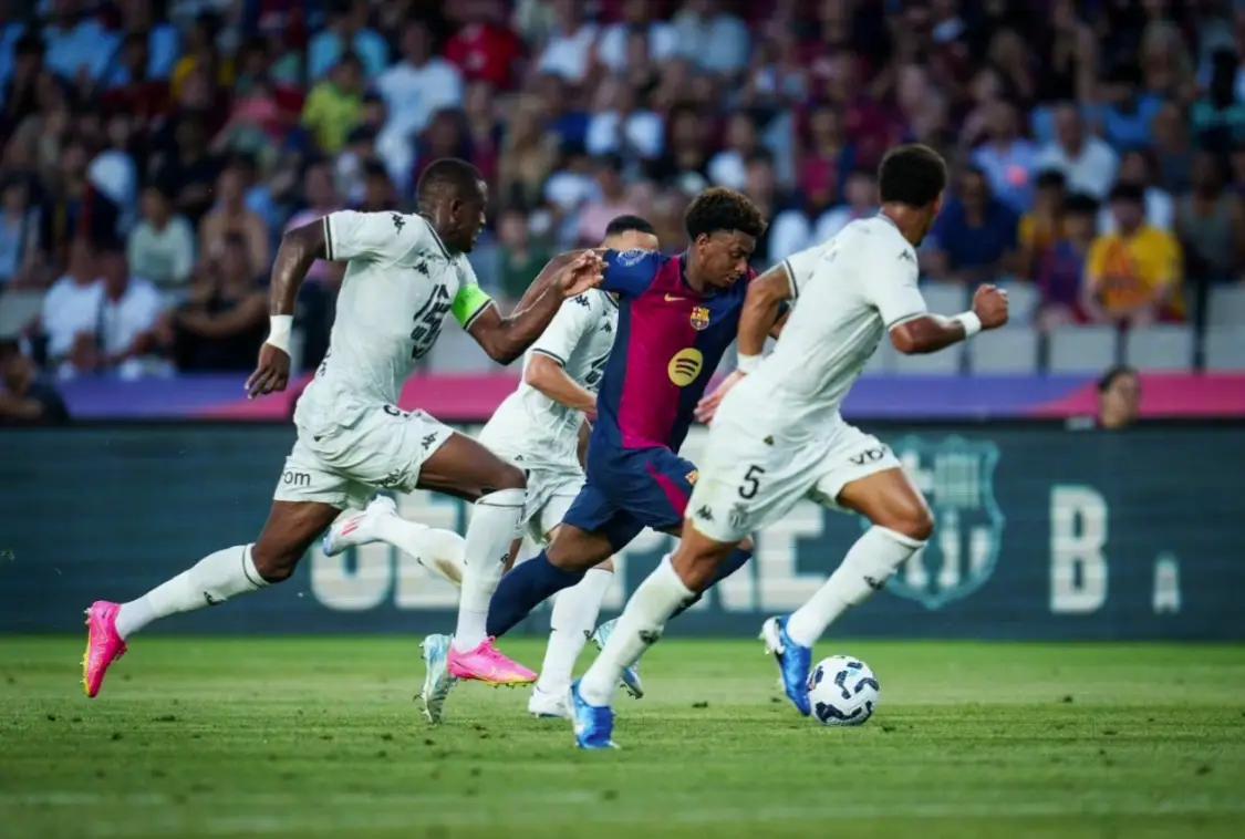 当然,就目前来看,与兵强马壮的马德里双雄对比,巴萨的近况确实有些不佳。北京时间8月13日凌晨2点,一年一度的尤伯杯决赛在西班牙巴塞罗那蒙特惠奇奥林匹克体育场举行,对阵双方分别是主场作战的西甲豪门巴塞罗那和受邀来访的法甲劲旅摩洛哥。两队均对主力阵容进行了一些保留,上半场0:0打平,而下半场风云突变,摩纳哥由拉明-卡马拉、恩博洛、马维萨连入三球,最终3:0击败巴萨,赢得了2024年尤伯杯冠军