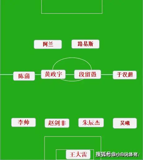 中场:陈蒲 于汉超 黄政宇 段刘愚