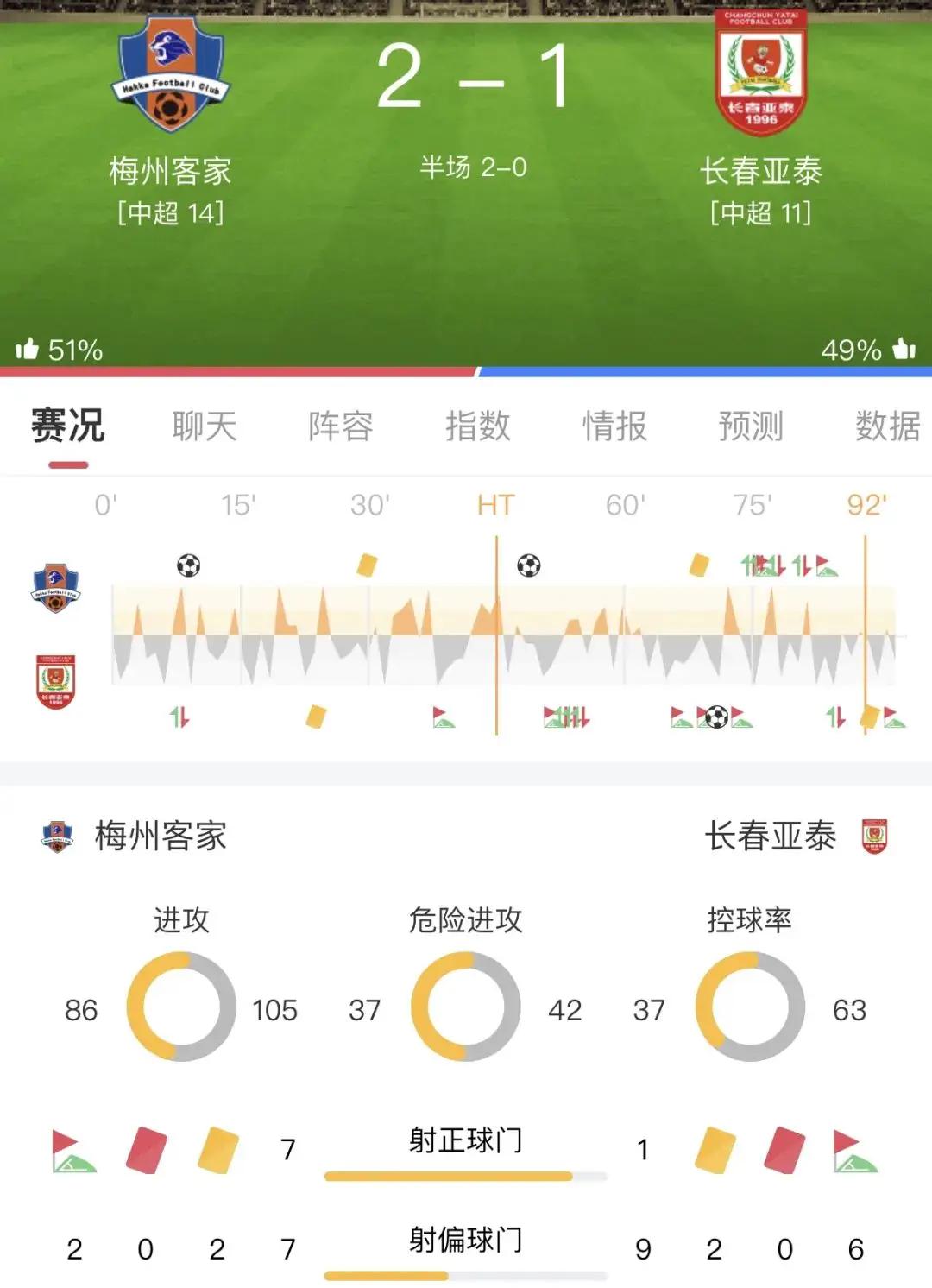 最终梅州客家队再次击败长春亚泰队拒绝了联赛的2连败发生,而长春亚泰队无缘联赛的2连胜。