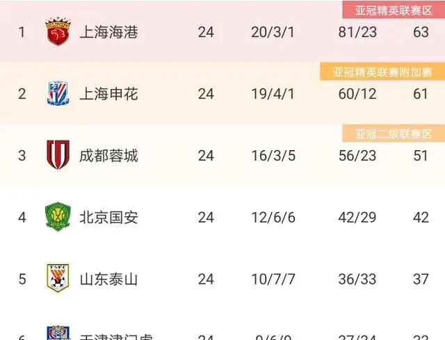 本赛季的中超联赛已进行到第24轮,上海海港与上海申花继续以绝对优势领跑积分榜。两队的分差仅为2分,一场比赛就能改变排名,争冠之路愈发紧张。而在积分榜的第三名位置上,成都蓉城领先第四名北京国安9分,几乎稳稳锁定了亚冠精英联赛第二名的名额。