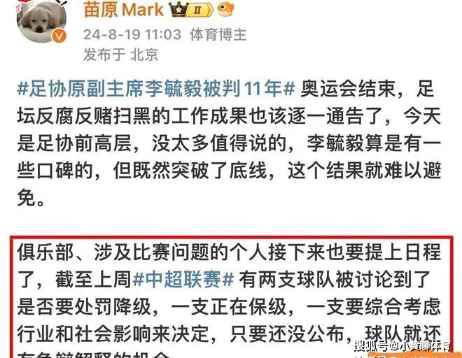 从要综合考虑行业以及社会影响决定来说,这支面临处罚的球队必然是一支中超强队,否则也不需要考虑行业和社会影响,在众多中超豪门当中,涉及这一次的反腐工作最多的,无疑就是山东泰山以及上海海港了,苗源的这份报道,也成功将这两支中超豪门推上热搜。