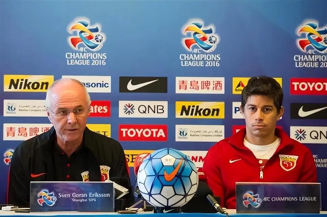 2016年2月23日,上海上港队主教练埃里克森(左)和球员孔卡在赛前新闻发布会上。新华社发(白雪摄)