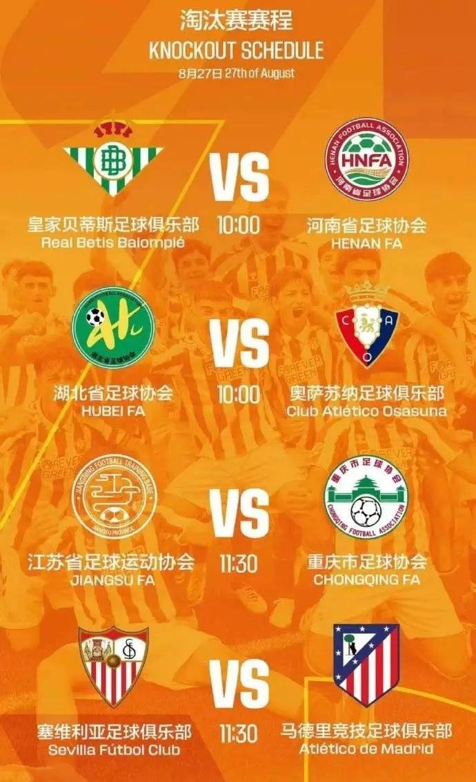 上午10点开始的两场1/4决赛,湖北足协3-1击败奥萨苏纳,贝蒂斯2-0击败河南足协,湖北足协今天下午5点与贝蒂斯展开半决赛较量。