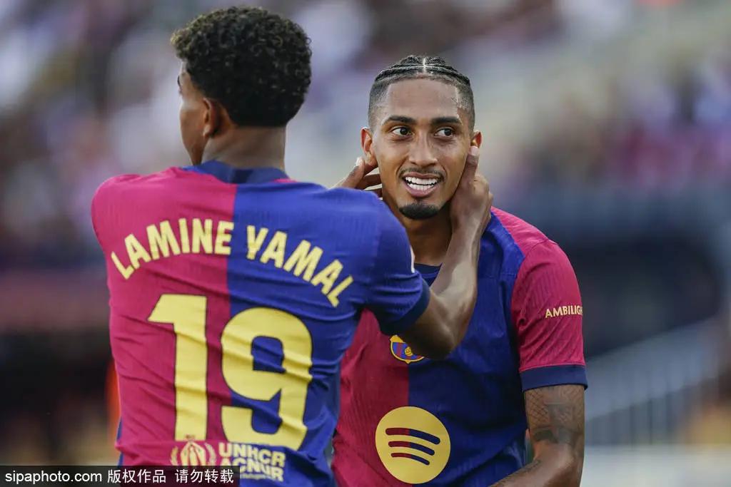 第72分钟,巴萨再度进球,亚马尔在反击中长途推进后送出直塞球,拉菲尼亚单刀面对门将轻松得手,巴萨5-0领先!拉菲尼亚此役实现帽子戏法。